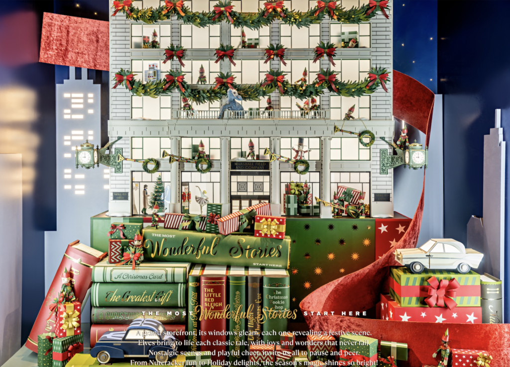 Every window, every detail, and every sheet of paper contributes to a single shared message: the heritage of Marshall Field’s lives on, lovingly reimagined through craftsmanship, storytelling, and holiday magic.